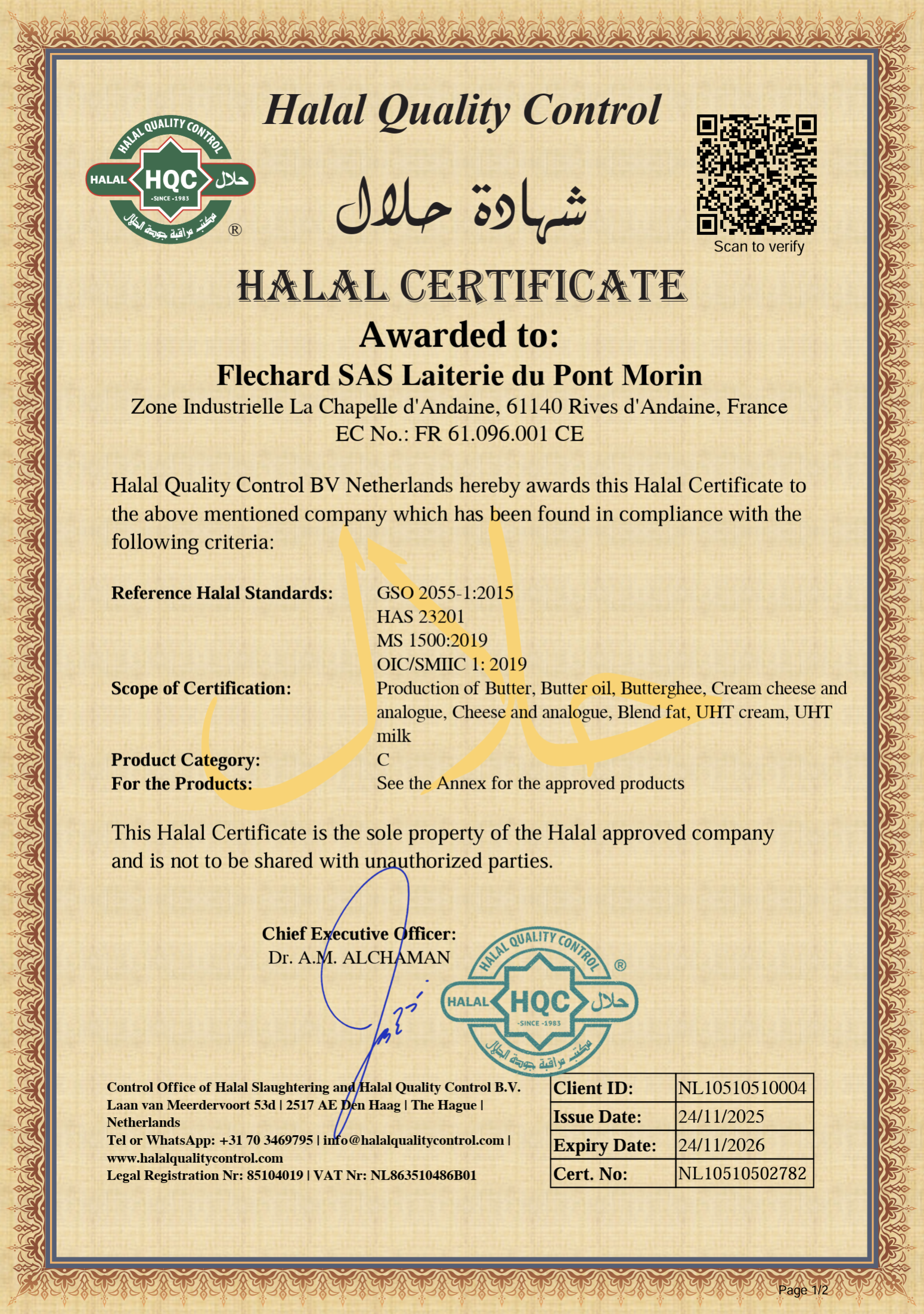 Product Certification la Vache de Paris Pure ButtergheeHalal Certification la Vache de Paris Pure ButtergheeCertificate of Origin